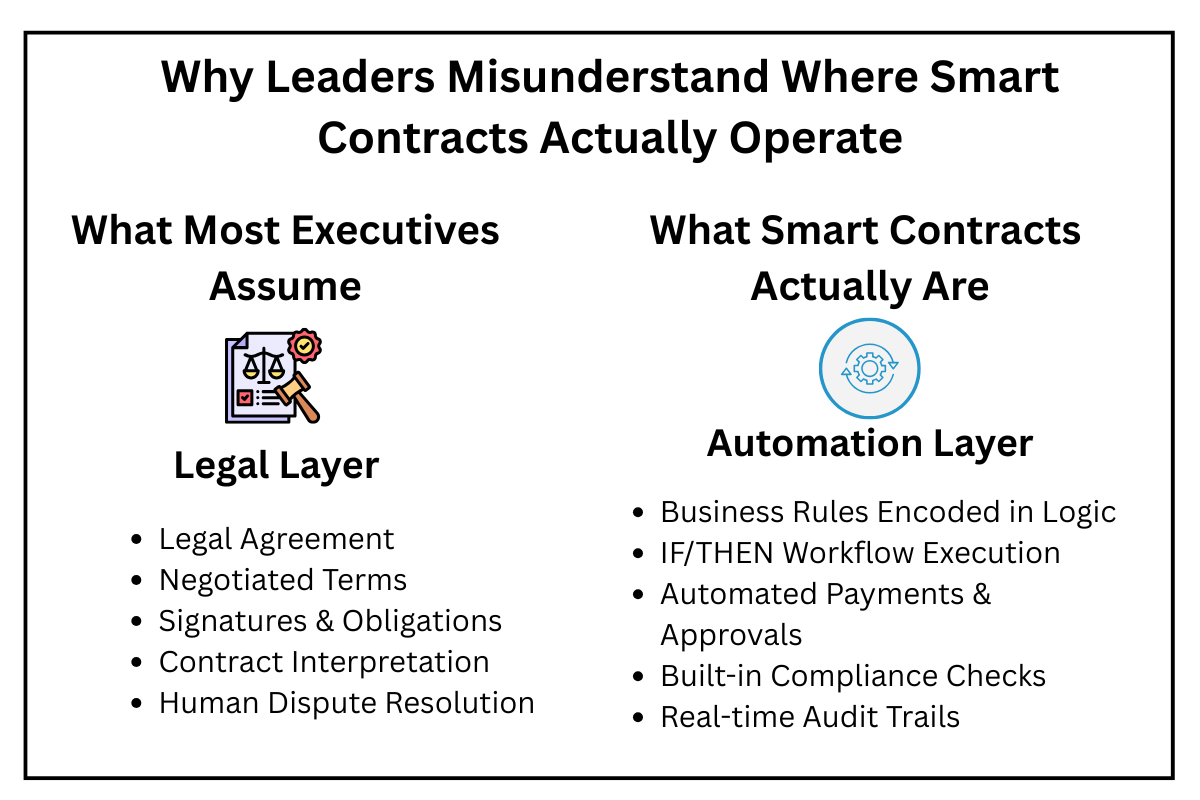 This is why enterprises are increasingly exploring smart contracts—not because their business resembles a vending machine, but because their most complex processes are built on rules and conditions that are perfectly suited for programmable automation.