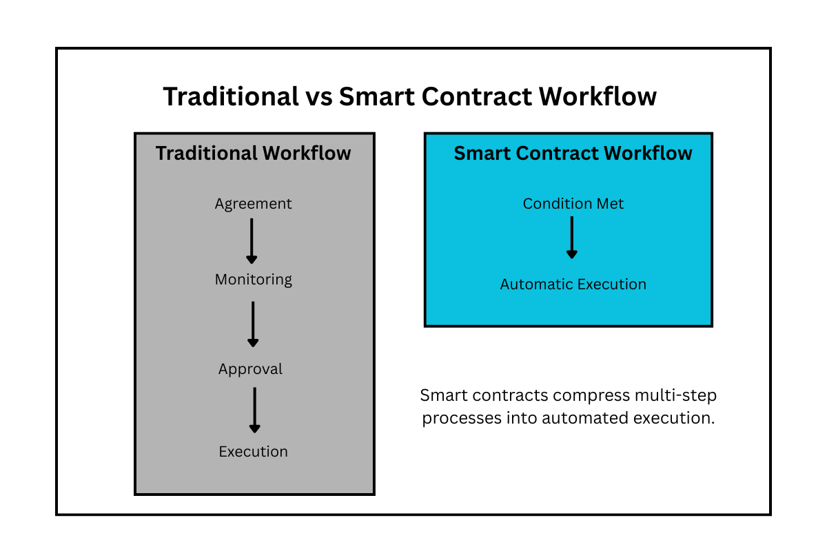 Smart contracts are best understood through what they enable operationally.